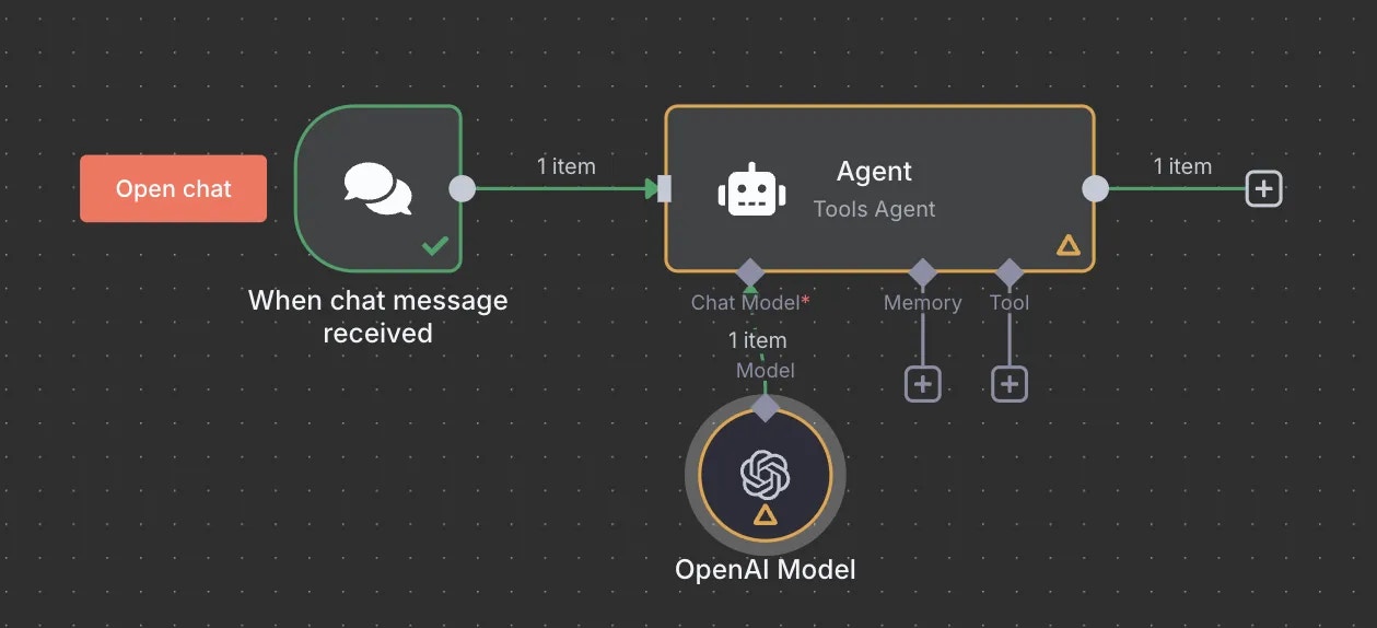 Now that you have your Portkey components set up, let’s connect them to n8n. Since Portkey provides OpenAI API compatibility, integration is straightforward and requires just a few configuration steps in your n8n workflow.